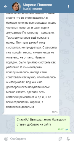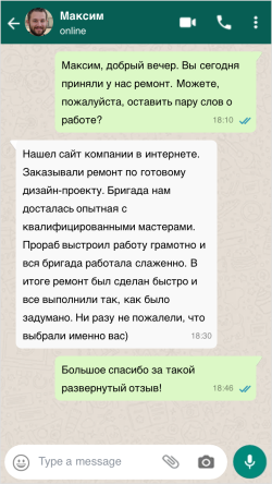 Фирма занимается ремонтом офисов, коттеджей, квартир, дач. Выполним любые виды ремонтных работ в помещении. Многие заказчики, которые обращались в нашу фирму, оставили положительные отзывы, они размещены на сайте. У нас представлены фото интерьеров для ознакомления клиентов. Мастера сделали больше 1000 заказов качественно и в срок.